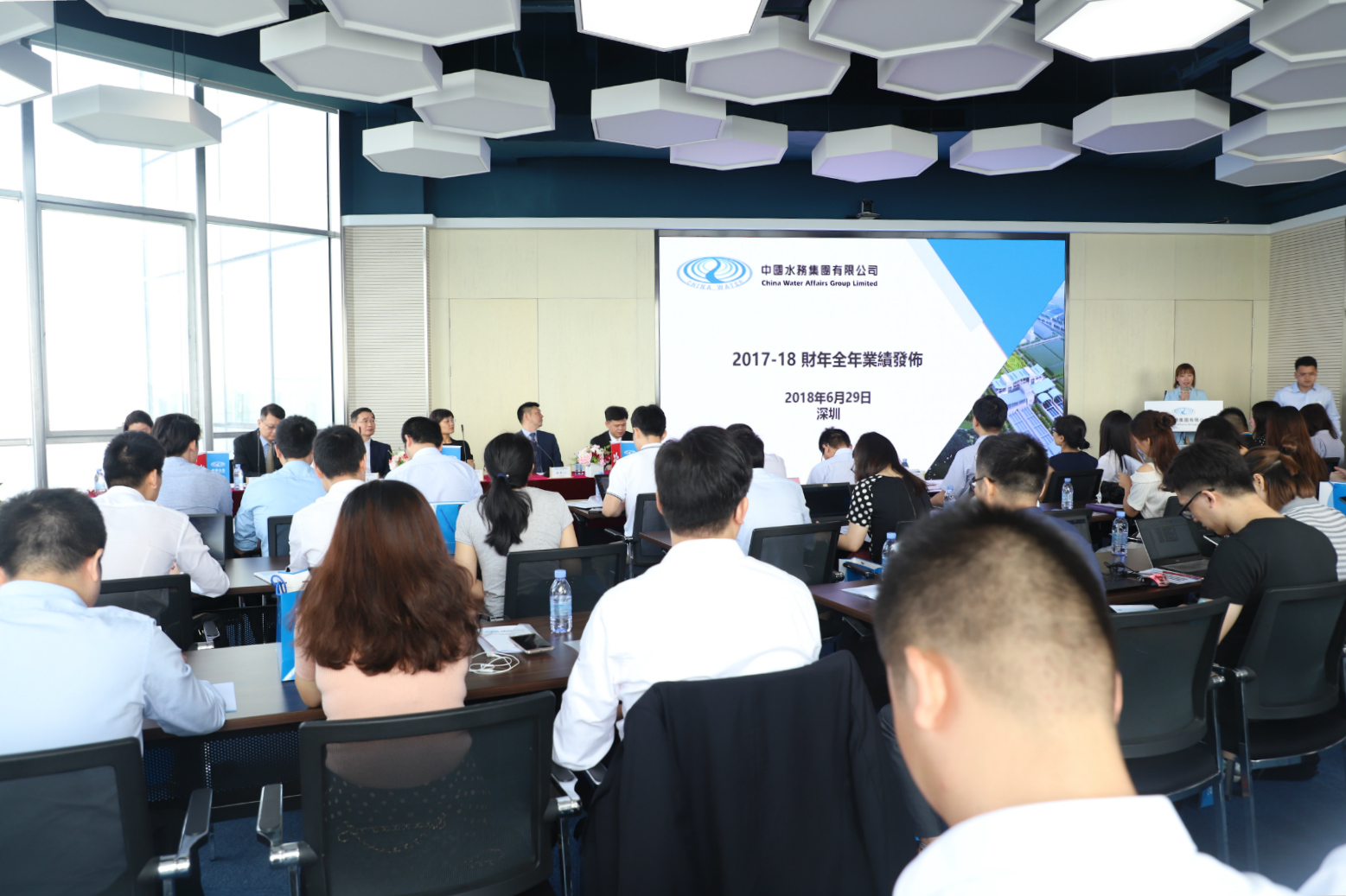 6月29日,中國水務(股票代碼0855.HK)于深圳金達環保榮超經貿中心召開2017-2018財務年度業績發布會。來自國泰君安、花旗銀行、匯豐銀行、民生證券、安信證券、米盟證券等知名證券公司和銀行的分析師、投資者70余人參加了交流會并進行了現場調研。