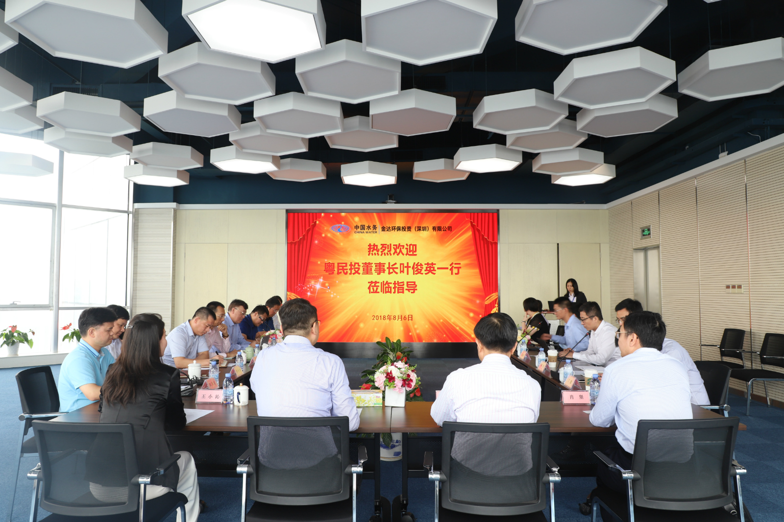 8月6日,粵民投董事長葉俊英、總經(jīng)理肖堅、高騰控股總裁丁靚等一行5人蒞臨金達(dá)環(huán)保考察,受到公司董事長李中、副董事長王小沁、總經(jīng)理黃偉才等的熱情歡迎。