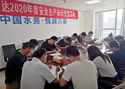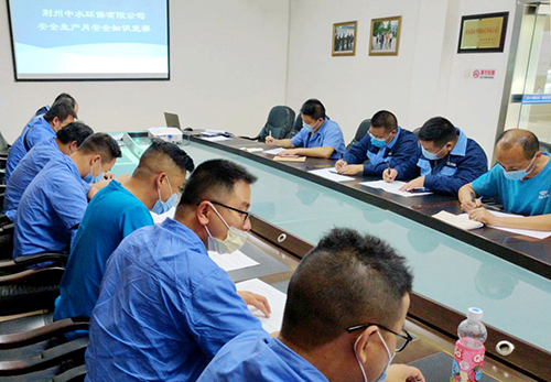 ↑ 金達(dá)環(huán)境旗下的荊州中水環(huán)保有限公司開展安全生產(chǎn)知識學(xué)習(xí)、知識競賽和應(yīng)急演練。