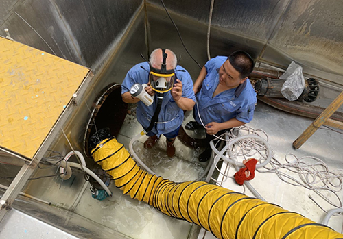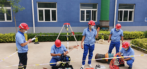 ↑ 金達(dá)環(huán)境旗下的北京同晟水凈化有限公司開展安全知識學(xué)習(xí)和考試,并開展有限空間安全作業(yè)演練等。