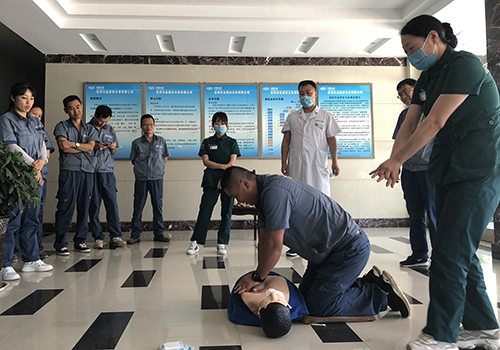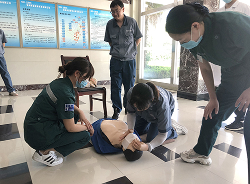 ↑ 金達(dá)環(huán)境旗下的寶雞項(xiàng)目公司(寶雞市金信安水務(wù)有限公司、寶雞市陳倉金信安水務(wù)有限公司)邀請消防專家、中國人民解放軍聯(lián)勤保障部隊(duì)第987醫(yī)院醫(yī)護(hù)人員開展消防、醫(yī)療急救知識與技能培訓(xùn)。